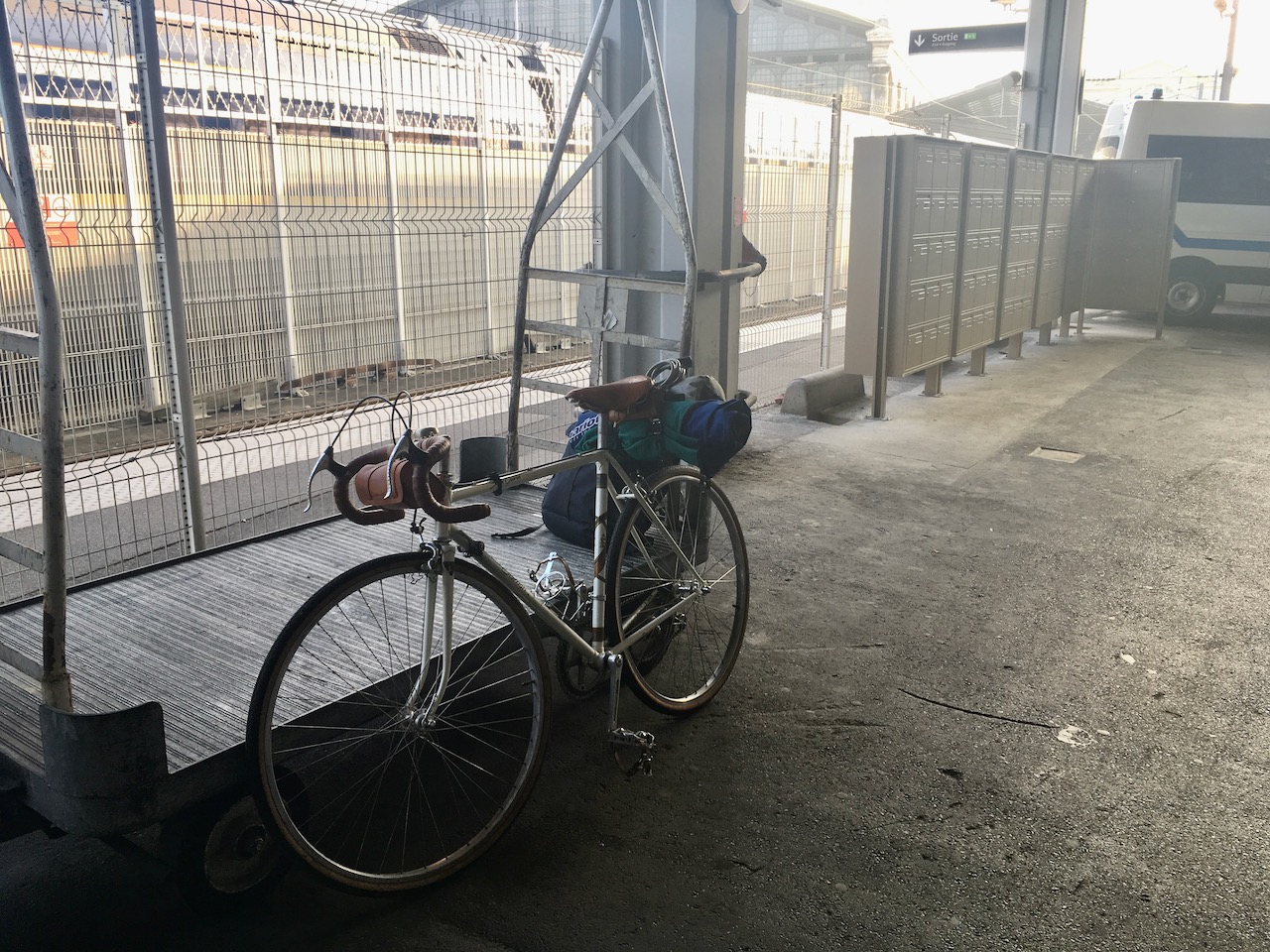 Once arrived at the Gare du Nord a long walk to the parcels office to get my bike which eventually arrived hung on a luggage trolley.